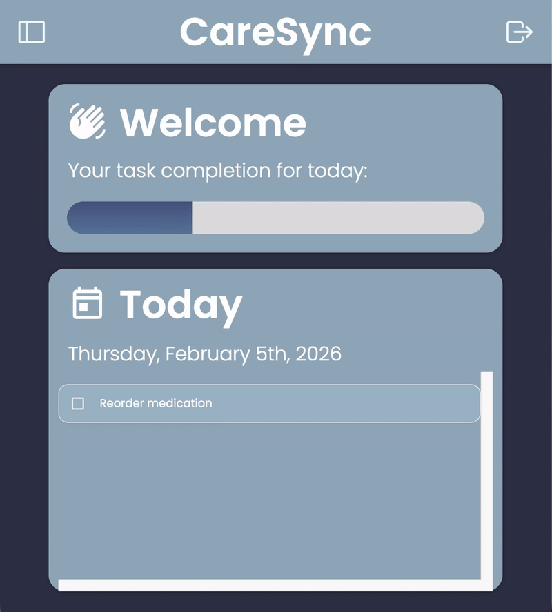 CareSync is a team-built web app designed to reduce friction in hospice and elder care coordination. Built with React and MongoDB, it allows families to link accounts, assign caregiving tasks, and stay synchronized through a shared, secure system.